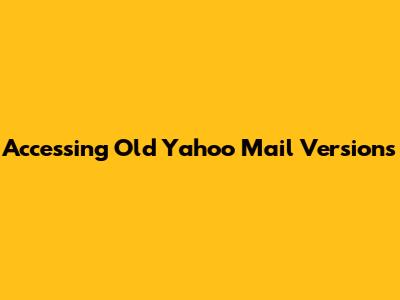 Accessing Old Yahoo Mail Versions