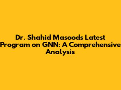 Dr. Shahid Masood's Latest GNN Program: Full Analysis