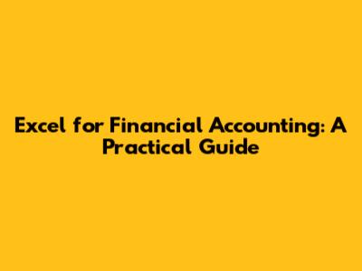 Excel For Financial Accounting: A Practical Guide