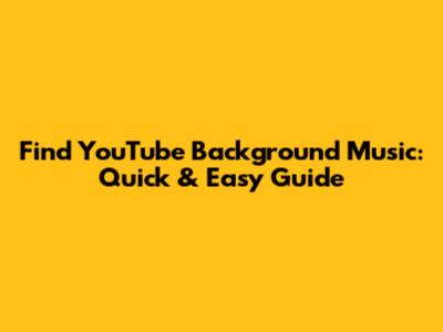 Find YouTube Background Music: Quick & Easy Guide