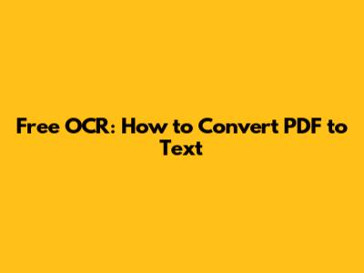 Free OCR: How To Convert PDF To Text