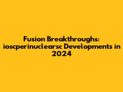 Fusion Breakthroughs: Ioscperinuclearsc Developments In 2024