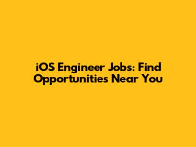 IOS Engineer Jobs: Find Opportunities Near You