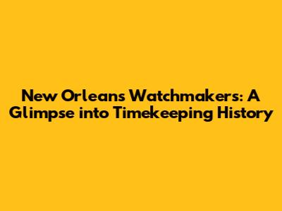 New Orleans Watchmakers: A Glimpse Into Timekeeping History