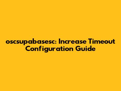 Oscsupabasesc: Increase Timeout Configuration Guide