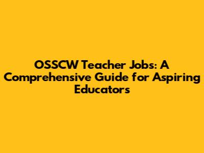 OSSCW Teacher Jobs: Apply Now!