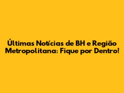 Últimas Notícias De BH E Região Metropolitana: Fique Por Dentro!