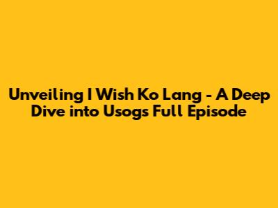 Unveiling 'I Wish Ko Lang' - A Deep Dive Into Usog's Full Episode