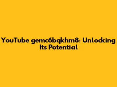 YouTube Gemc6bqkhm8: Unlocking Its Potential